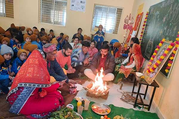Shiva Poojan and Rudrabhishek were performed at Maharishi Vidya Mandir Takula Nainital on Thursday. First of all, Guru Poojan was performed by the Principal and all Staff.